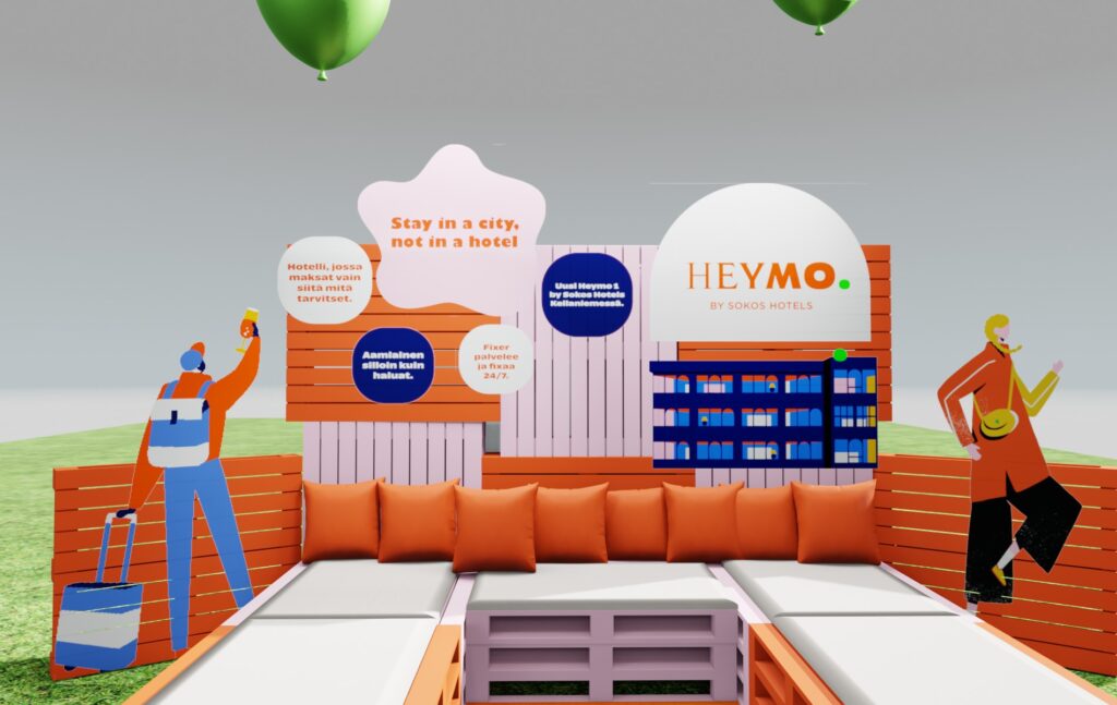 Sokos Hotelsin uusi hotellityyppi Heymo toimi UNation 23 – festivaalin yhteistyökumppanina kesäkuussa 23. Fair Factoryä pyydettiin suunnittelemaan ja toteuttamaan tapahtumaan ”Heymo festarilounge”, joka toimisi festarivieraiden ”levähdyspaikkana” eli siinä voisi istahtaa. Lisäksi toivottiin, että piste olisi kuvauksellinen ja someystävällinen.