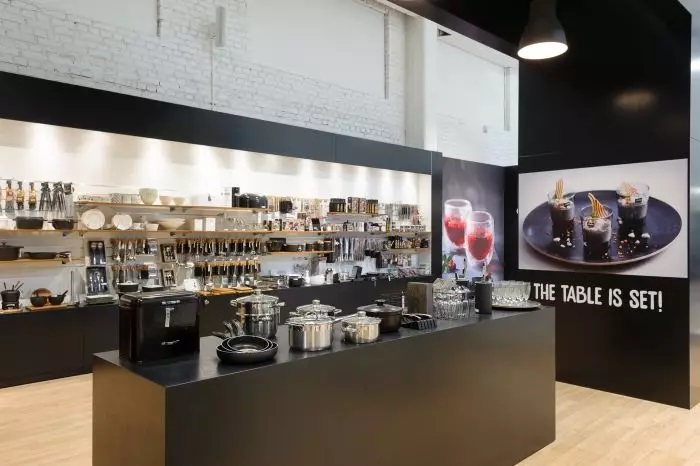 Teimme asiakasta miellyttävät suunnitelmat, tilat peruskorjattiin ja valaistus uusittiin asiakkaan toimesta. Tällä välin rakenteet ja kalusteet, jotka myös asensimme, valmistuivat tuotannossamme. Rakenteiden toivottiin olevan muunneltavissa ja brändinäkyvyys oli tärkeää.