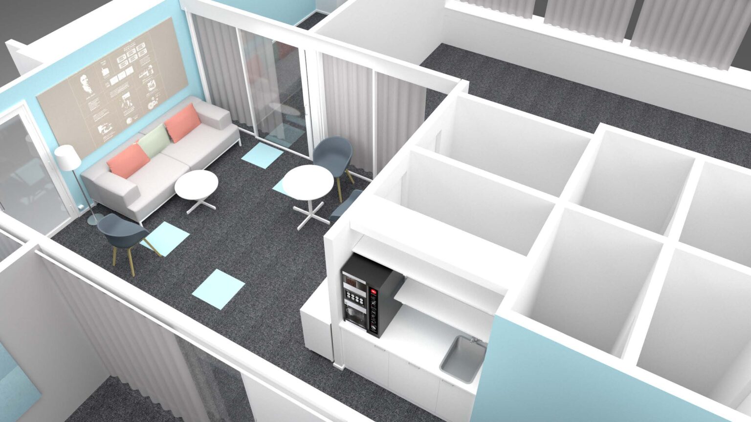 Toimiston sisustus on myös toiminnallisuuden suunnittelua: miten saamme tilasta erilaisissa tilanteissa joustavan? Tarvitaanko esimerkiksi liikuteltavia väliseinäratkaisuja? Millaista henkilökohtaista tilaa kaivataan? Toimitilasuunnittelutiimimme auttaa löytämään teille parhaat toiminnalliset ratkaisut. Ota rohkeasti yhteyttä, niin kartoitetaan tilanteenne!